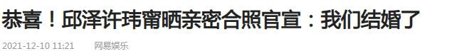 网易娱乐——恭喜!邱泽许玮甯晒亲密合照官宣:我们结婚了