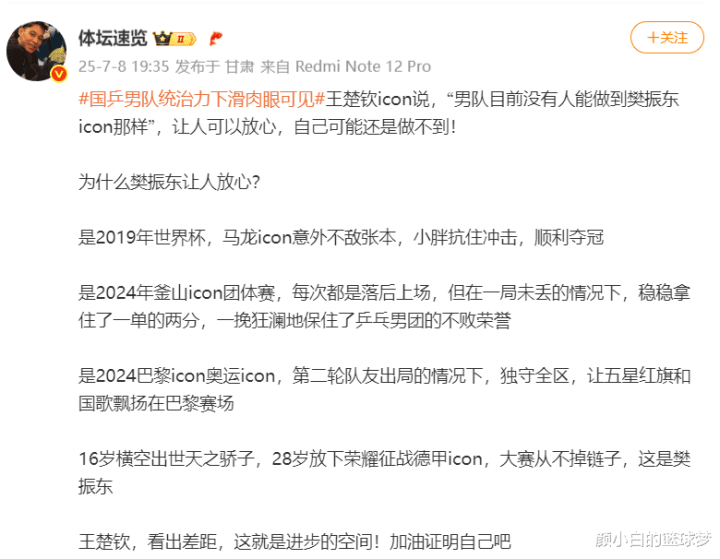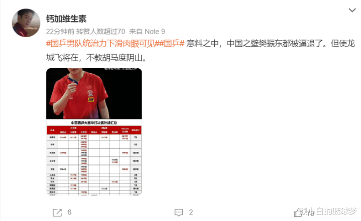 博主写道:2019年世界杯马龙意外不敌张本,樊振东顶住压力夺冠;