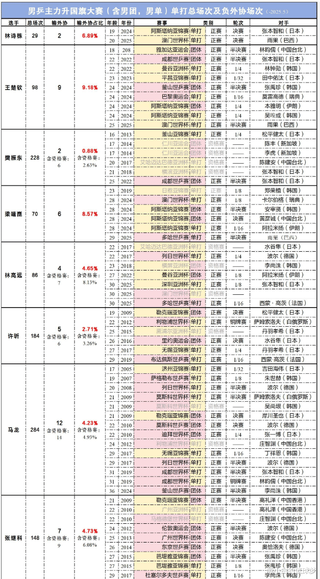 看了这些数据后,大家应该明白为何樊振东是男队遮羞布了吧?